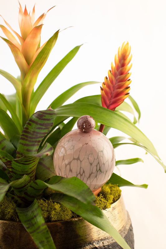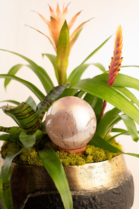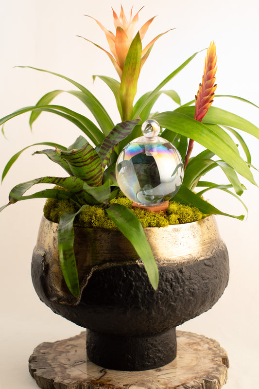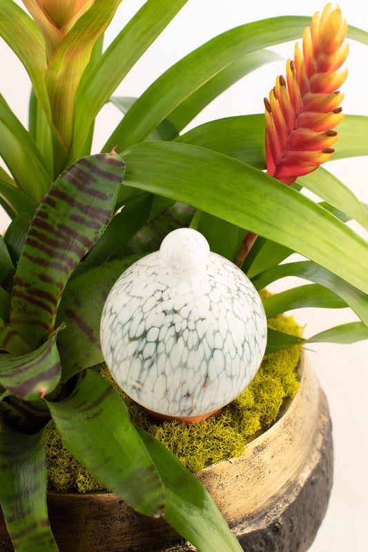 Our artisanal globes are beautiful one of a kind reservoirs to nourish both your plants and home decor. Like all good design they perfectly balance form and function. Each one is hand blown by skilled glass artists. This glass is made to last.