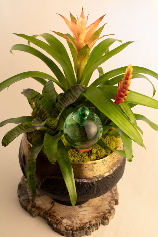 Our artisanal globes are beautiful one of a kind reservoirs to nourish both your plants and home decor. Like all good design they perfectly balance form and function. Each one is hand blown by skilled glass artists. This glass is made to last.